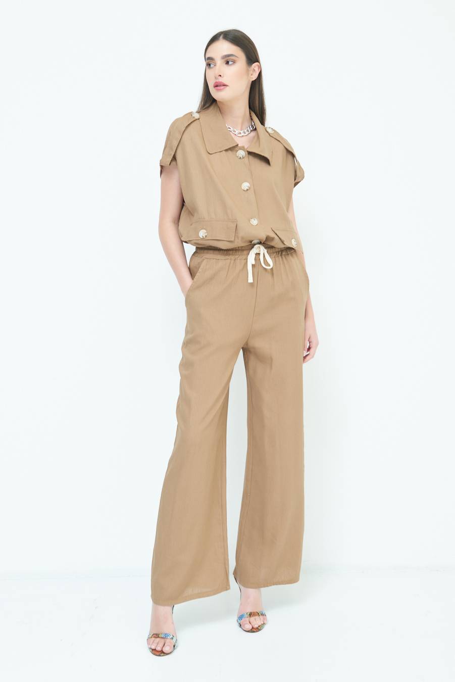 Kikisix PANTA PALAZZO CON ELASTICO VISCOSA LINO TABACCO Flash Sale