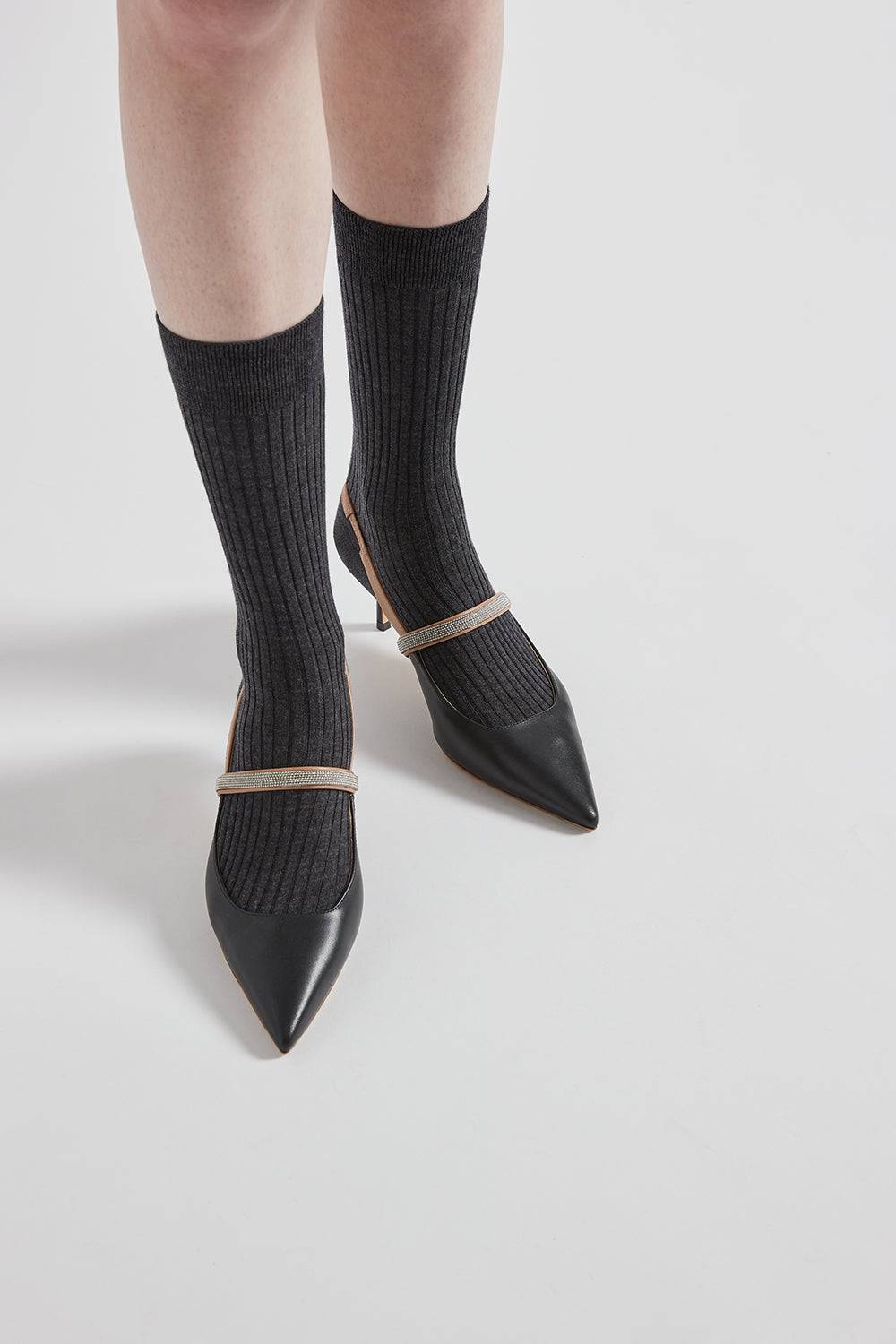 Realizzate in pelle nappata bicolore, queste décolleté slingback della capsule Transition si distinguono per l'applicazione dell'iconico Punto Luce che avvolge il piede con eleganza.La silhouette a punta è completata dal cinturino elastico e dal tacco basso per il massimo comfort.