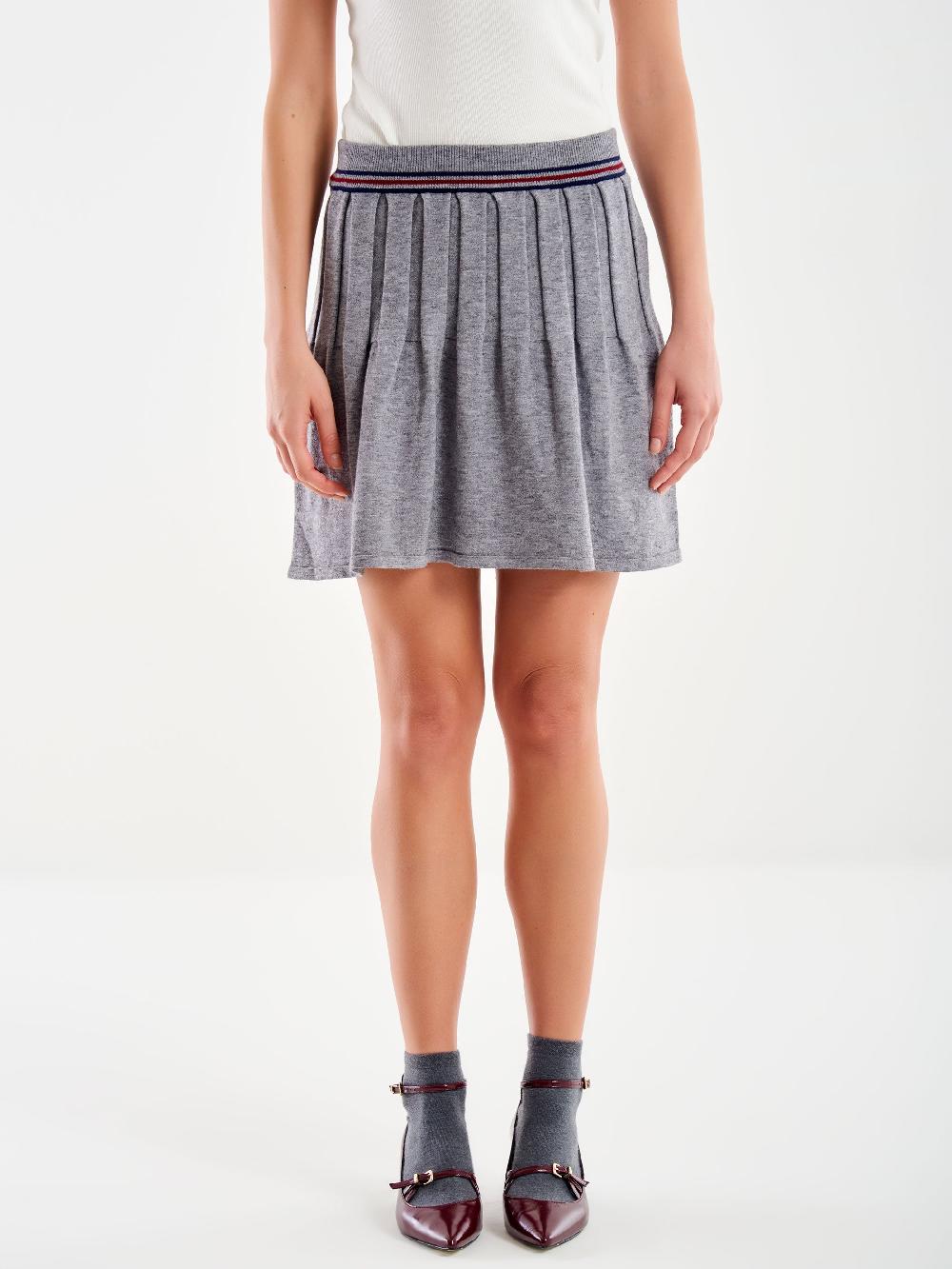 Gonna a pieghe in maglia con fascia elasticizzata in vita.
